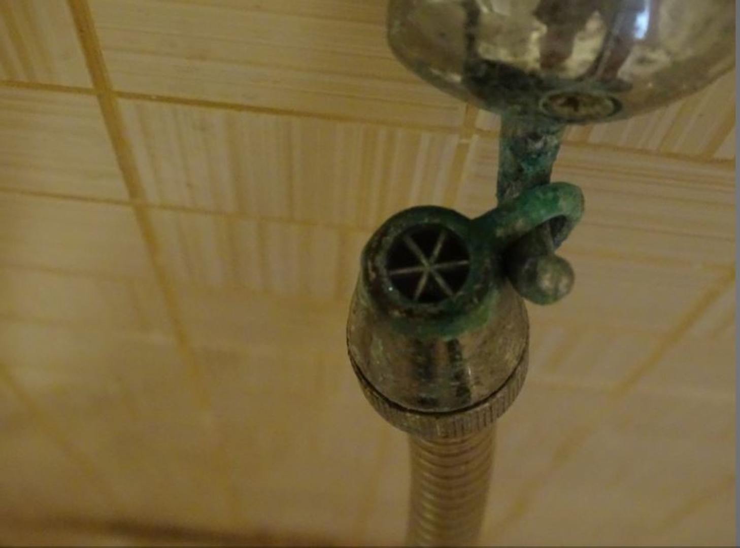 Schimmel und Grünspan am Schlauch in der Toilette