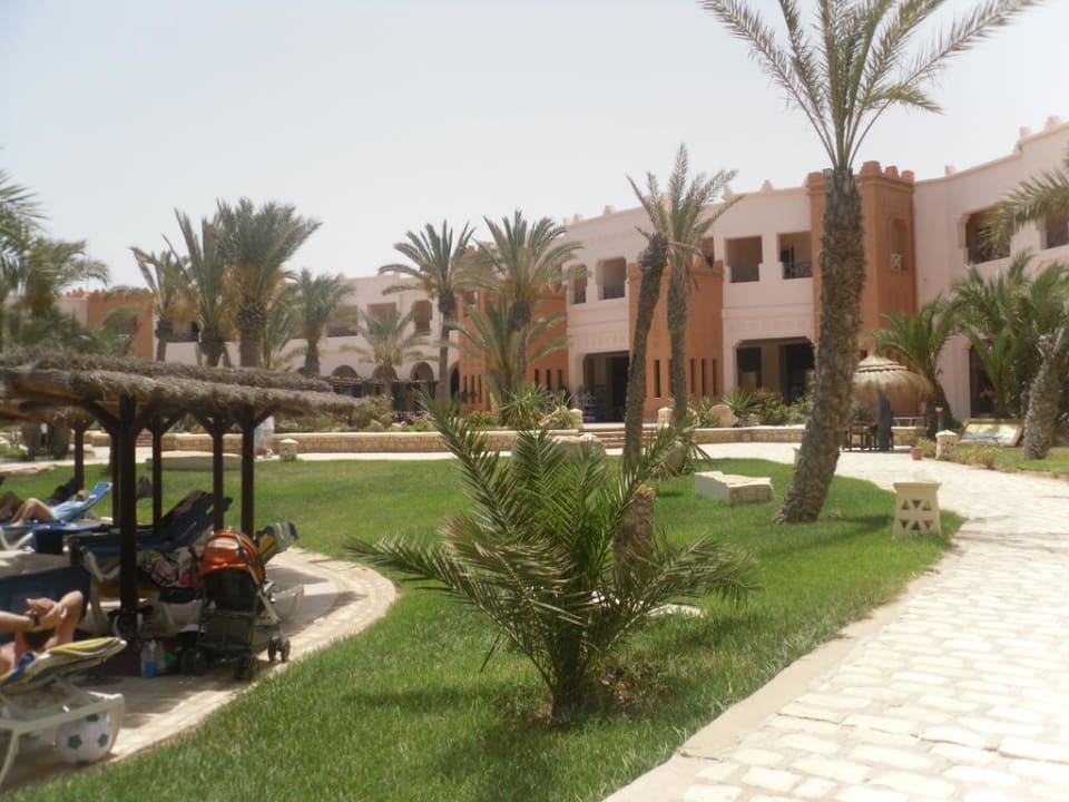 Blick von der Anlage aufs Hotel