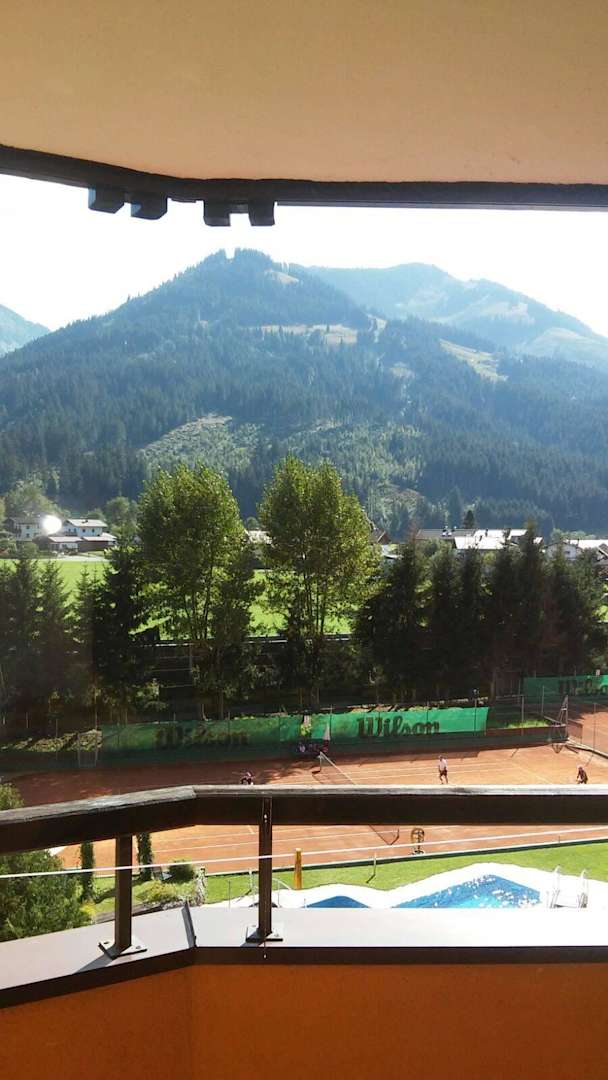 Blick vom Balkon auf Tennisanlage