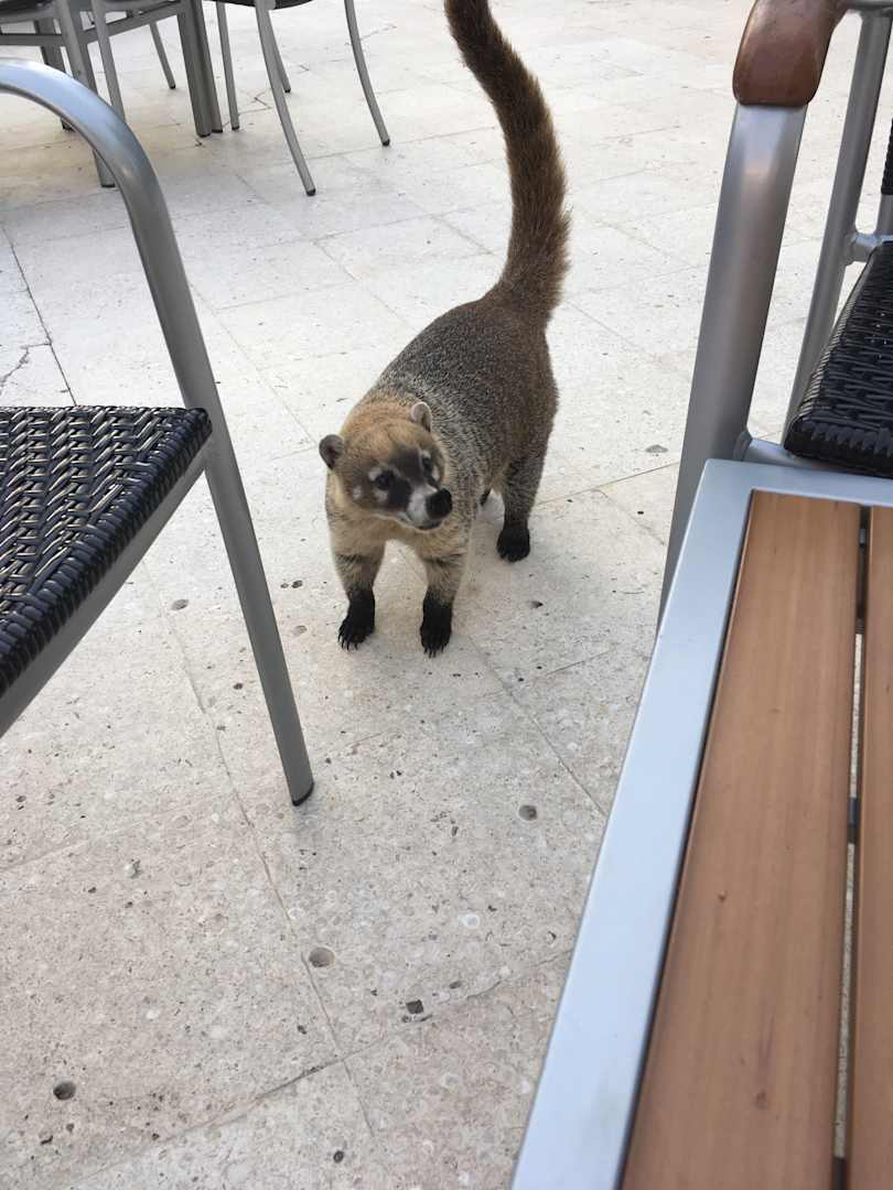 Man sieht regelmäßig einen Nasenbär in der Anlage herumlaufen