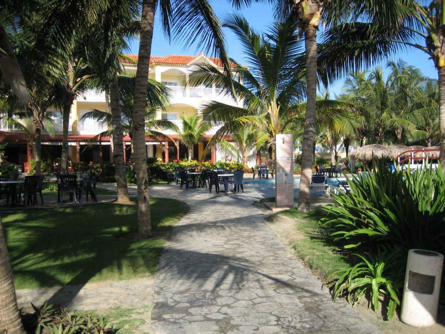 Blick vom Strand auf das HotelDas Bild zeigt den Blick vom Strandzugang auf das Hauptgebäude mit Buffet-Restaurant & Bar.