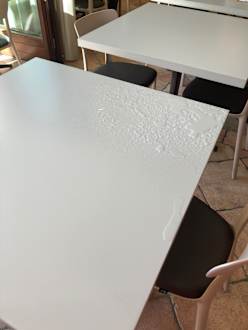 die Auswirkungen der undichten, tropfenden Klimaanlage im Speisesaal