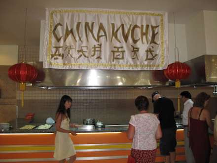 China-Ecke mit frischen Zutaten aus dem Wok