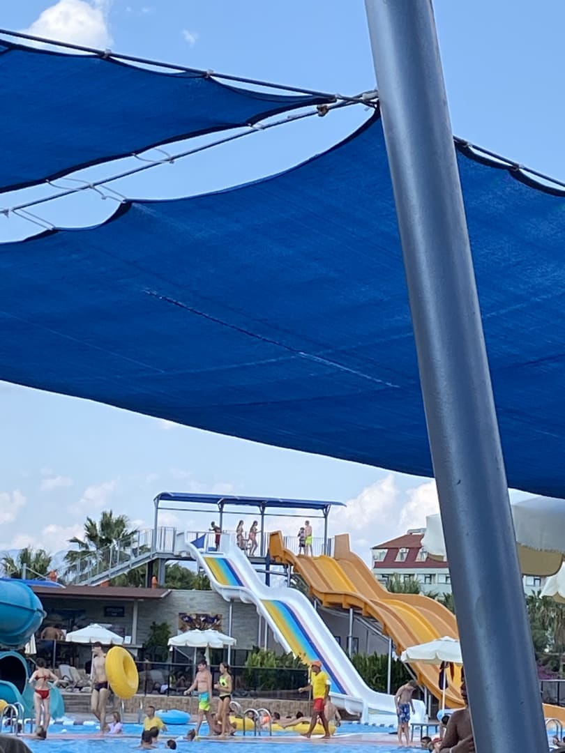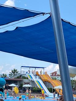 Aqua Park mit den erwachsenen Rutschen, von den Liegen aus gesehen