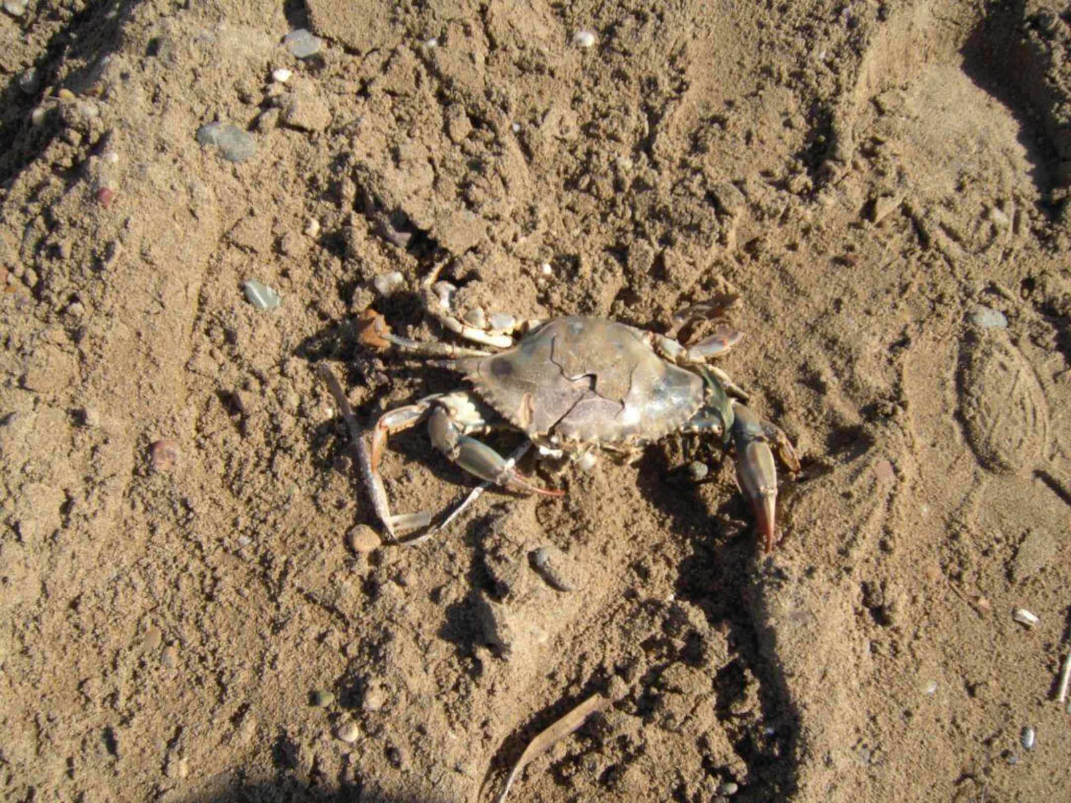 Am Strand endecktriesige Krabbe