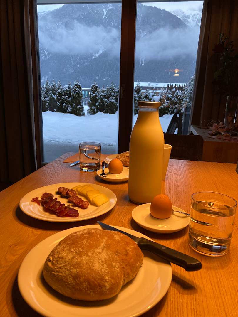 Frische Milch, Eier, Käse und Wurst werden morgens mit frischen Brötchen vor das Zimmer gestellt 👌🏻