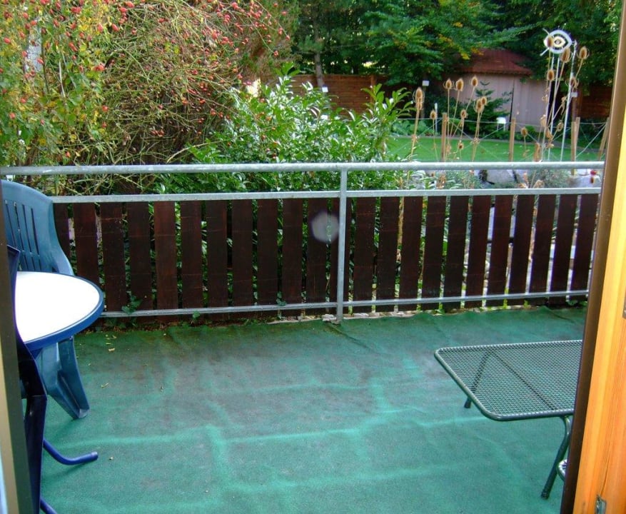 vom Zimmer raus auf den riesigen Balkon/Terrasse mit Gartenblick; ruhig, schön