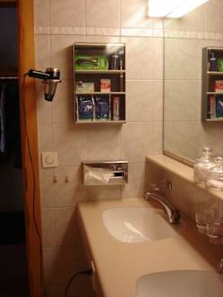 Bad Mit Doppelwaschbecken, gescheitem Föhn und "Mini-Bar" (wenn man z.B. die Zahnbürste vergessen hat)