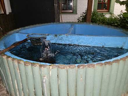 Alter Brunnen neben dem Eingang. Fische drin werden wohl gegessen.