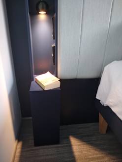 Mini- Nachttisch fast 1 m vom Bett entfernt
