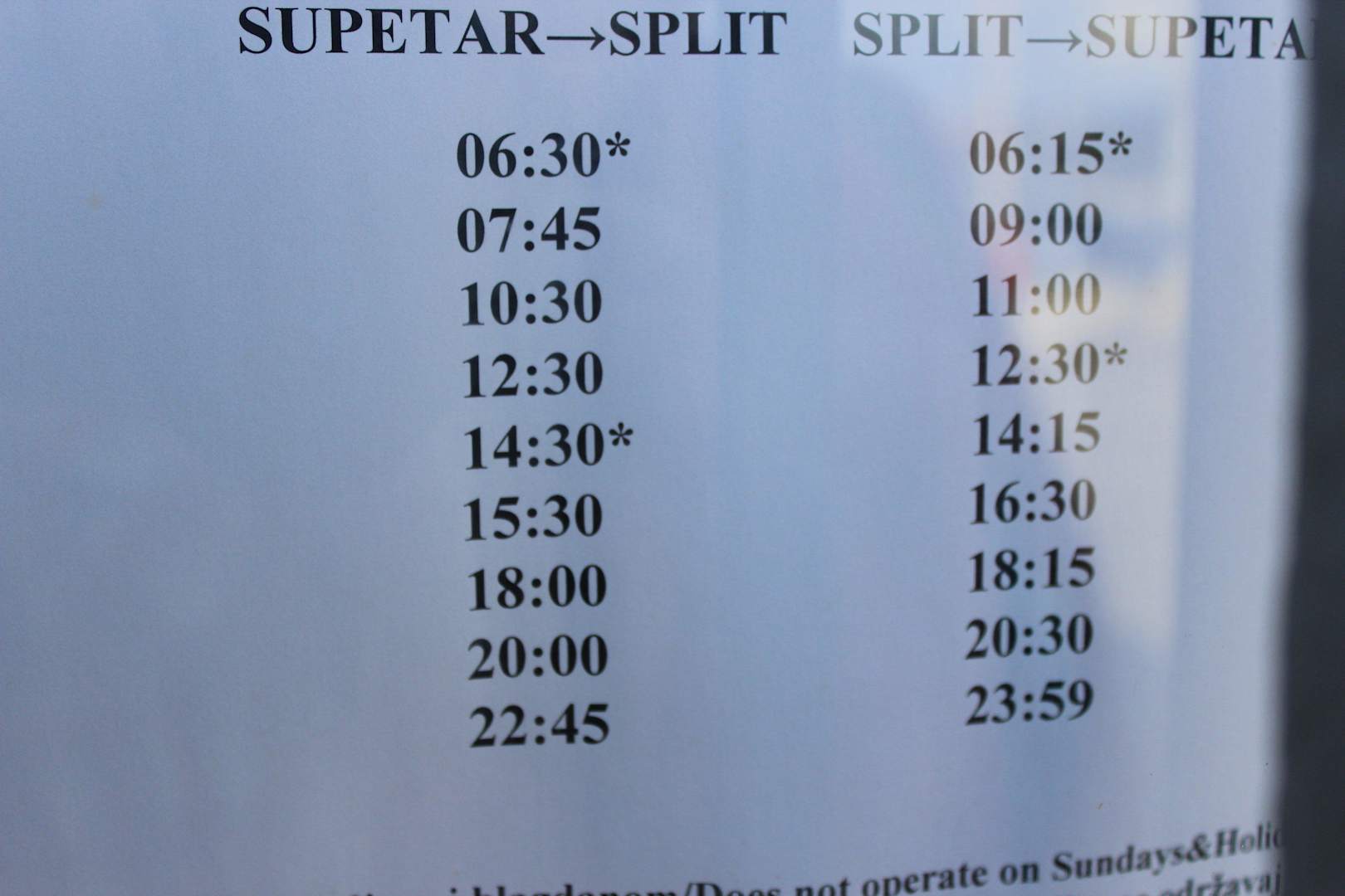 Fahrplan Supetair-Split u. zurück