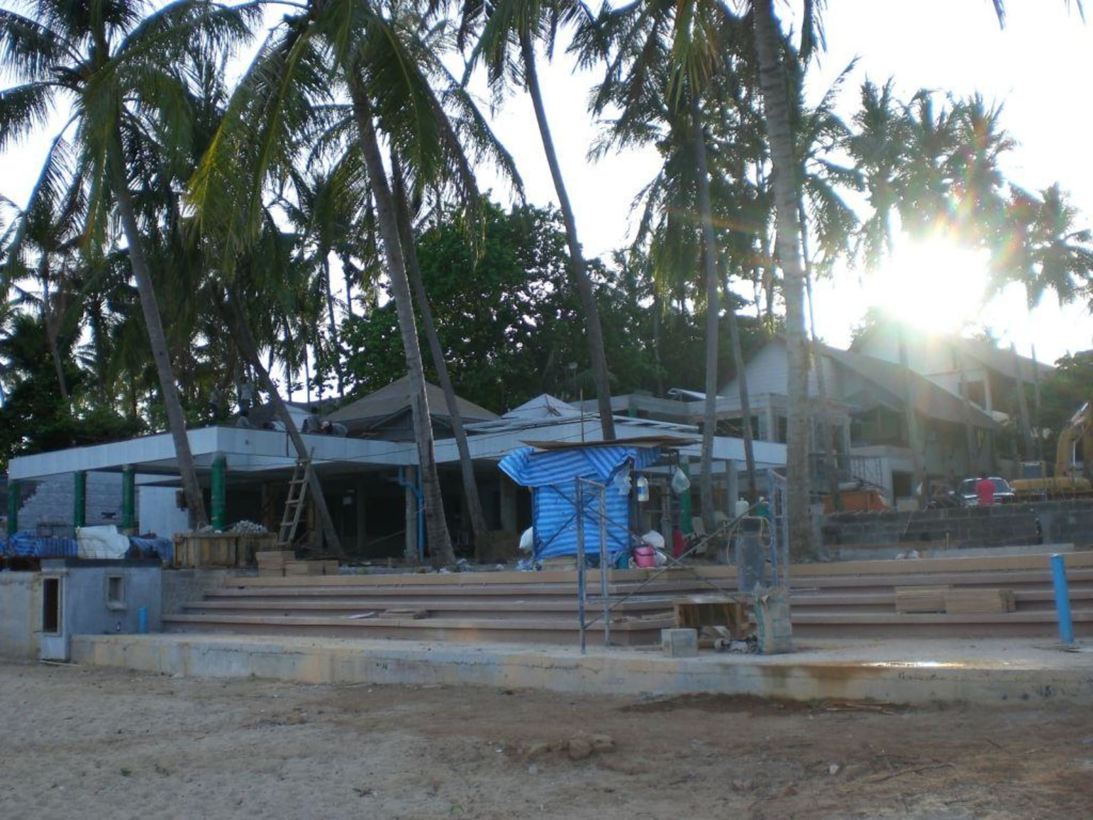 Baustellensicht vom Strand aufs Hotel