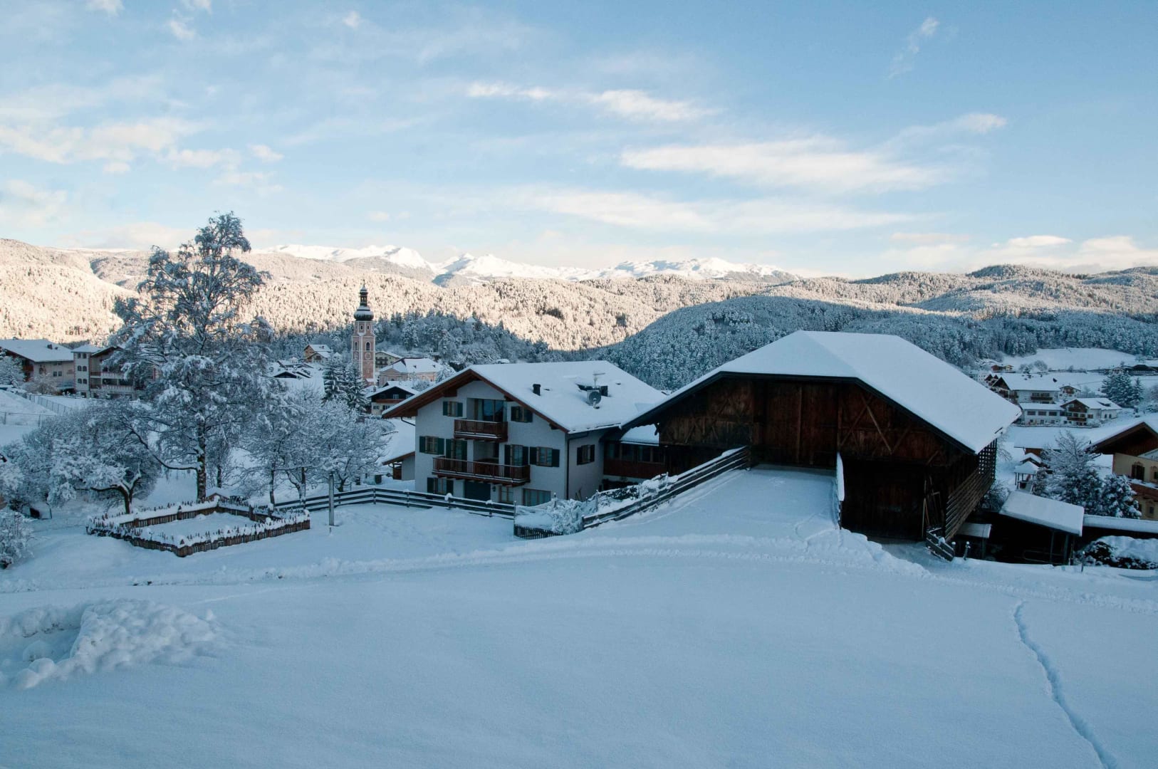 Im Winter am frühen Morgen: Hof und Kastelruth