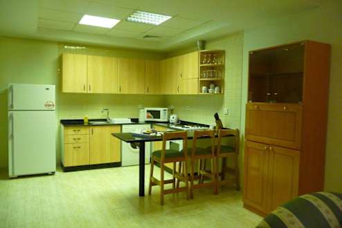 Zur wirklich komplett ausgestatteten Küchenzeile gehört noch ein zusätzlicher Schrank mit viel Stauraum (rechts im Bild). Ein Appartment, in dem man wirklich kochen könnte.