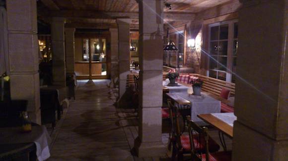 Überdachte Terrasse am Abend