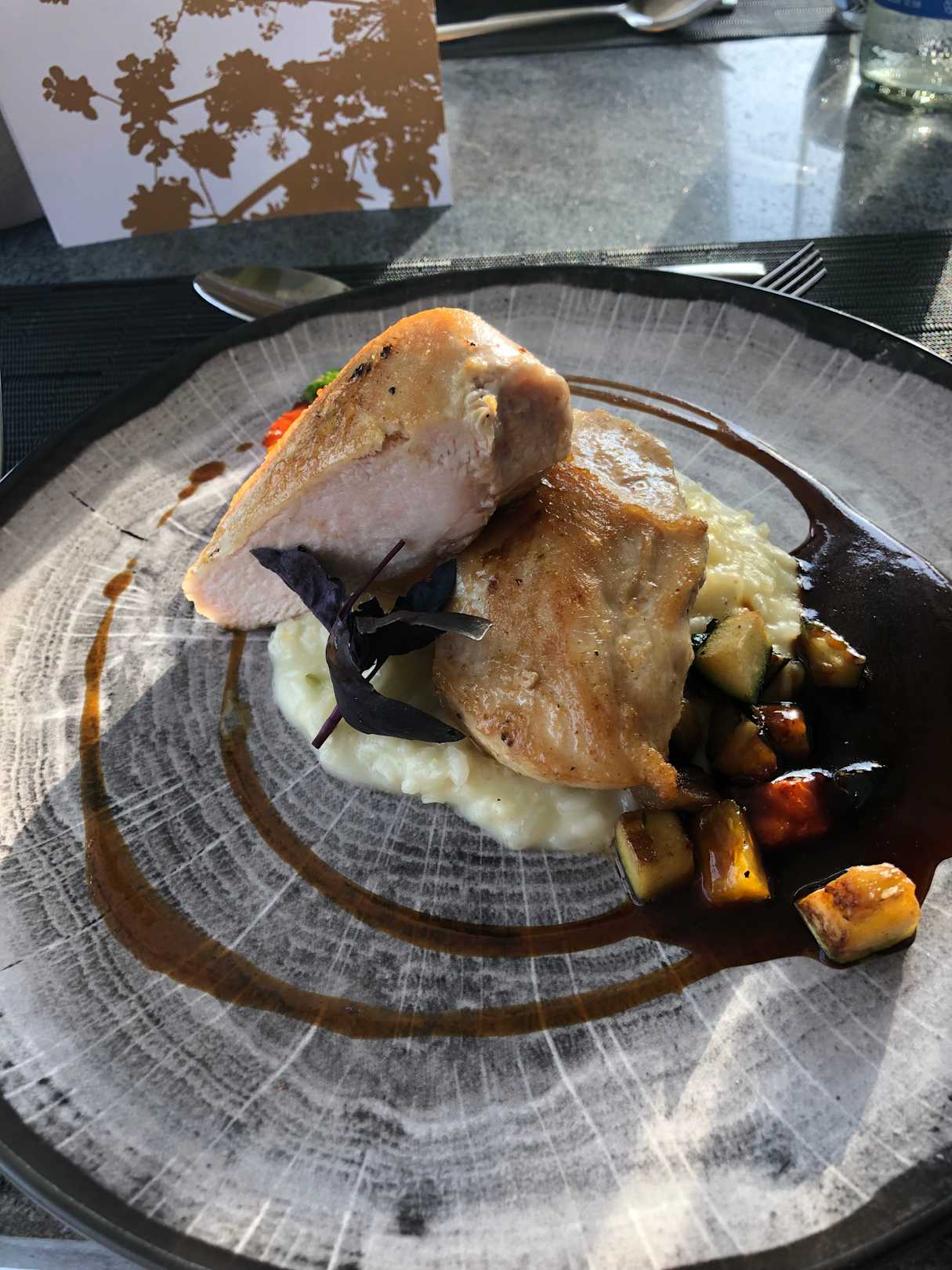 Pouletbrust Glasiert mit Feigensenf auf Parmesanrisotto mit Grillgemüse. Mega lecker!