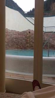 Grosser WhirlpoolVon der "Wärmebank" aus in Richtung grossem Whirlpool aussen.