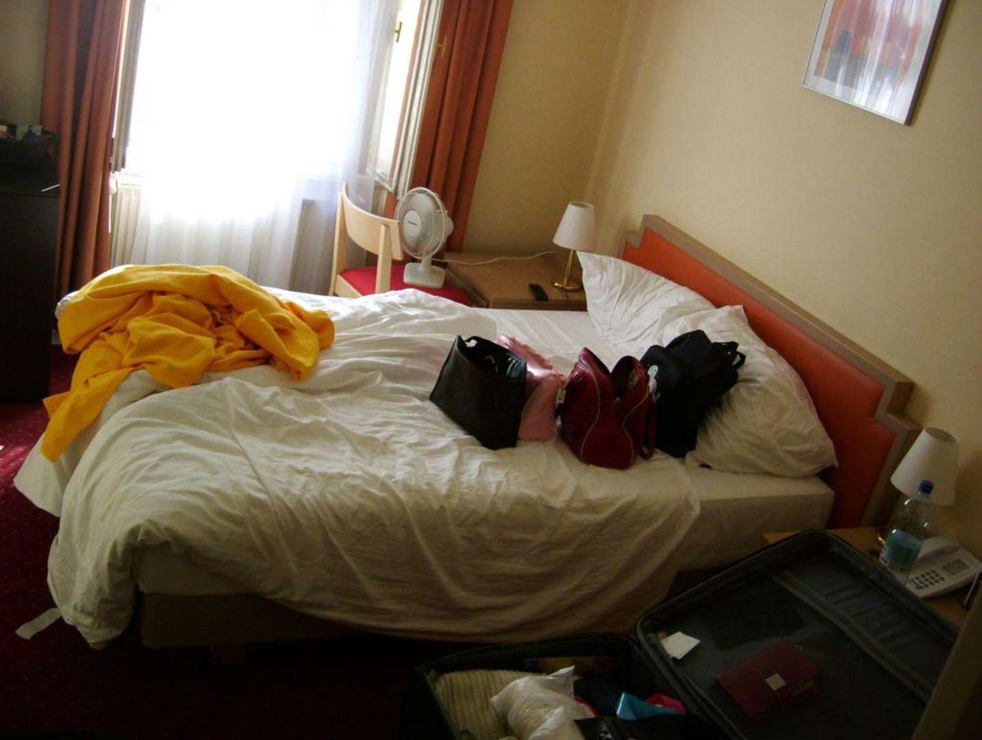 In der Touristenklasse sieht ein Doppelzimmer(2,5X3,5m) etwas anders, als auf der Homepage aus. Zwei Personen mit Koffern können sich kaum noch bewegen. Entspricht niemals 4Sternen