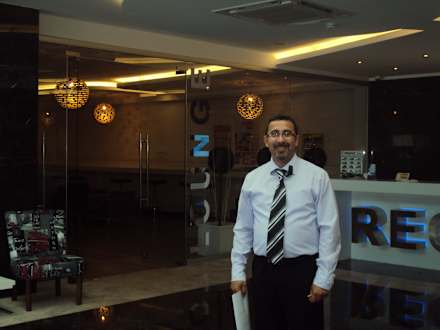 An der Reception mit dem Office Manager vom Hotel
