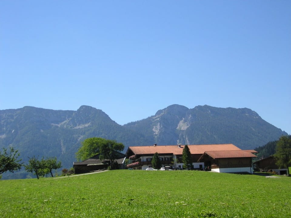 Blick auf den Wimmerhof und die umliegenden Berge.