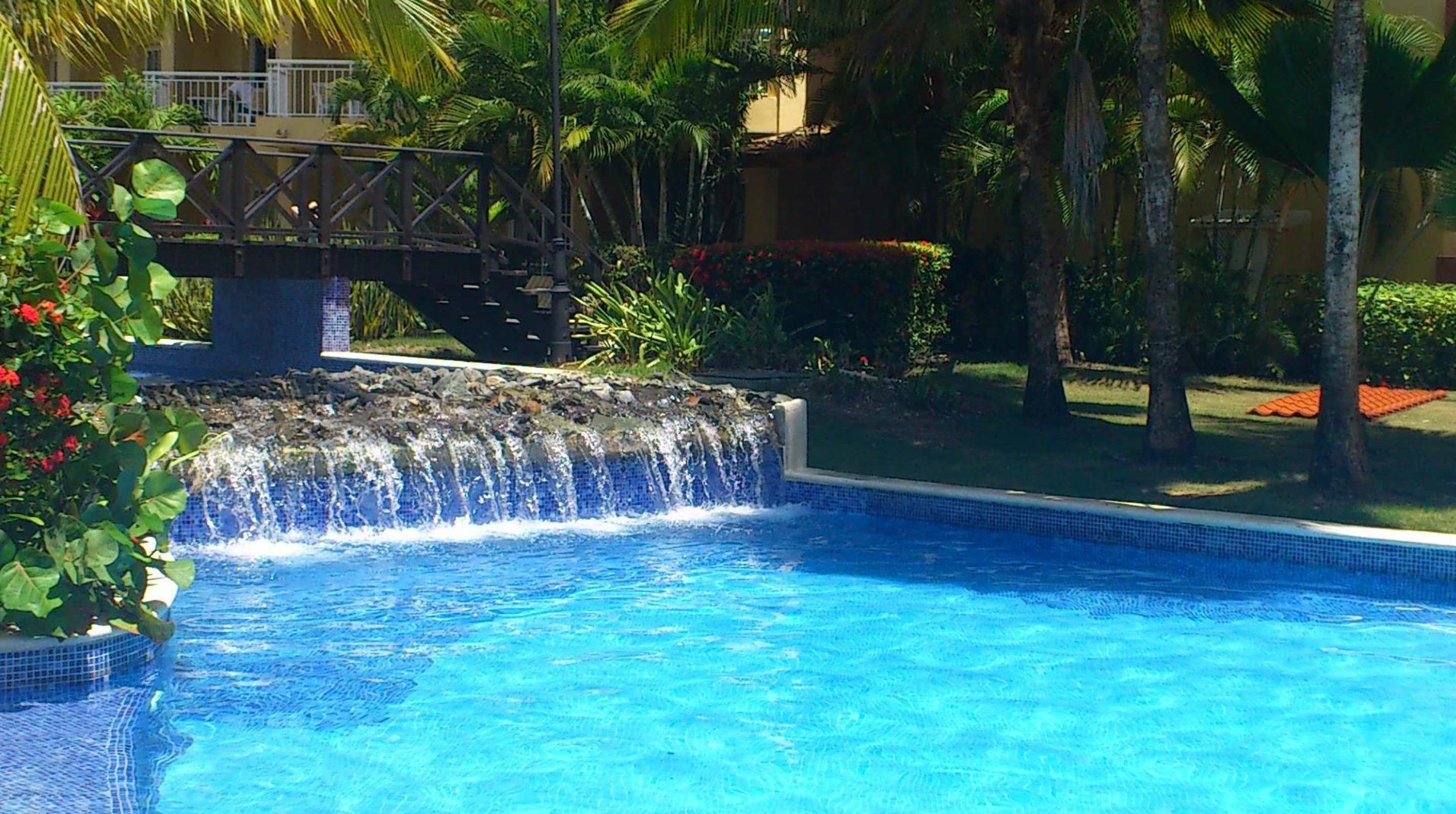 Der kleine Wasserfall beim Pool