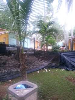 Gartenanlage mit einer der Baustellen.