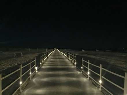Beleuchteter Steg zur Badebucht