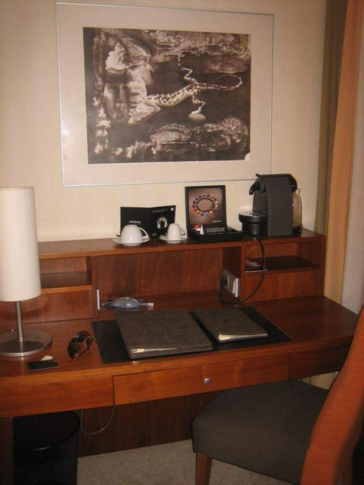 Der SchreibtischNespresso Maschine mit drei Kapseln. 2 polnische zloty pro kapsel. Circa 50 cent.