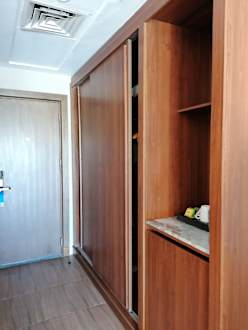 Eingang mit großem Schrank, Minibar und Tresor inklusive.