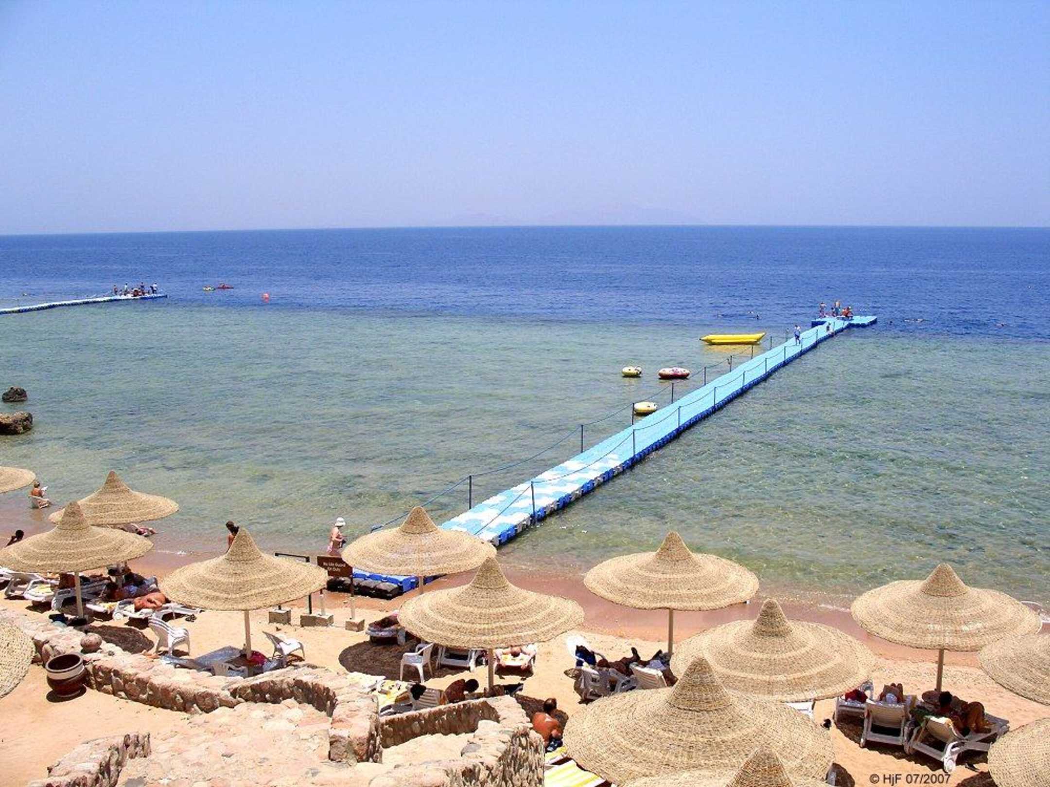 Per Hotel-Shuttle in 10 Min. an den eigenen (Korallen-)Strand. Über eine schwankende Schwimmbrücke gelangt man dort an die Riffkante, wo jede Menge kleinerer aber auch manchmal größerer Fische beobachtet werden können.