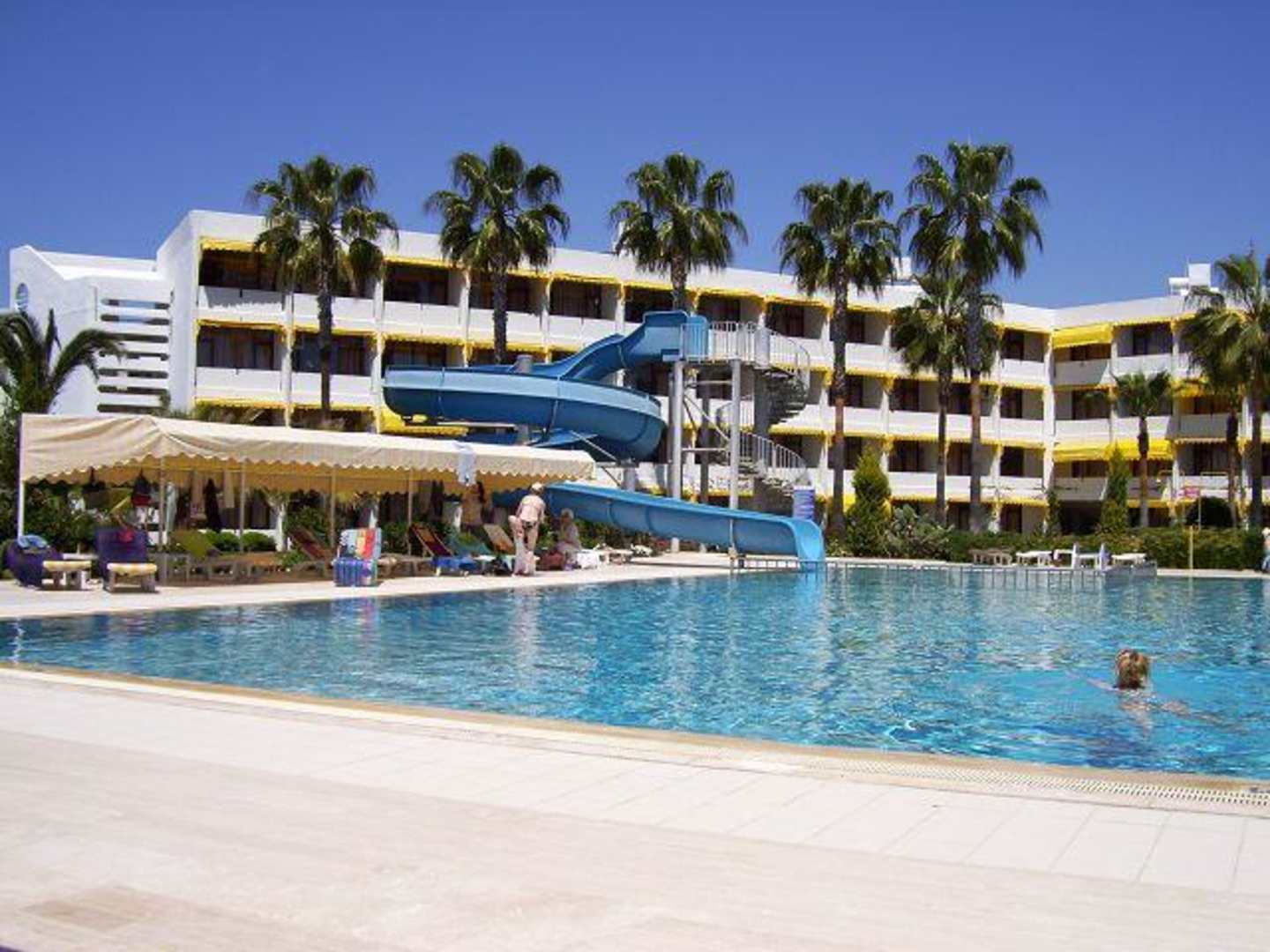 Das Hotel ist in U-Form ein Stück davon mit Pool