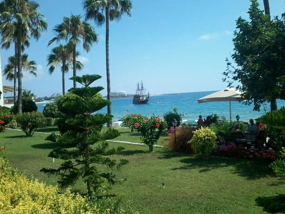 Teil des Gartens mit Piratenschiff im Hintergrund