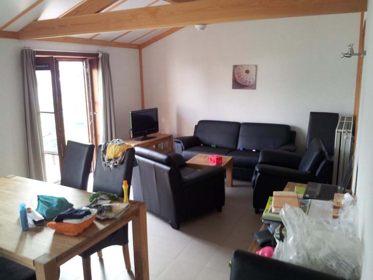 Wohn-, Esszimmer mit Ausgang auf Terrasse