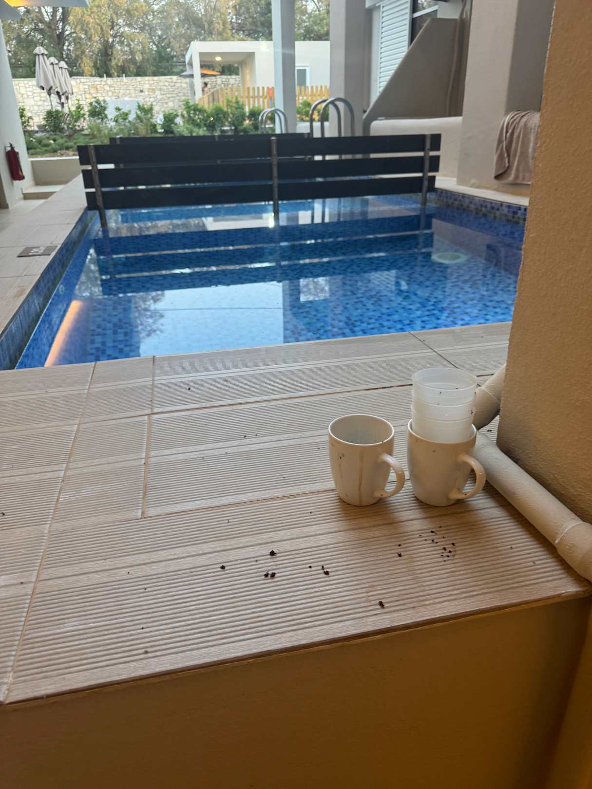 Tassen die an unserem Privaten Pool stehen gelassen wurden(mit Ameisen)