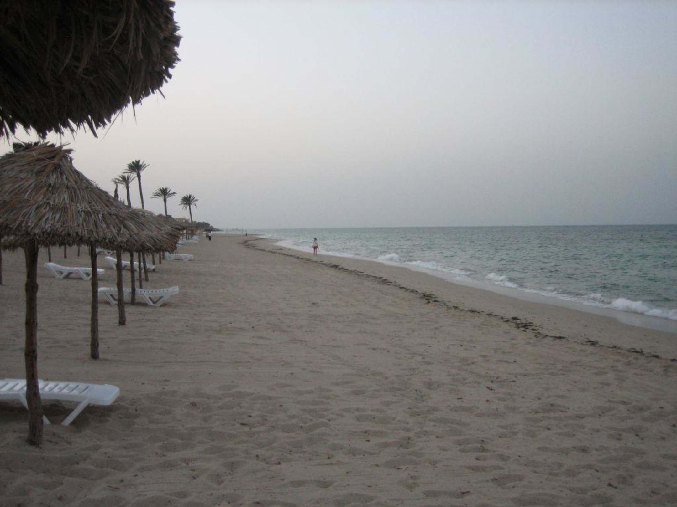 Endlos wirkender Sandstrand(bei Abenddämmerung)