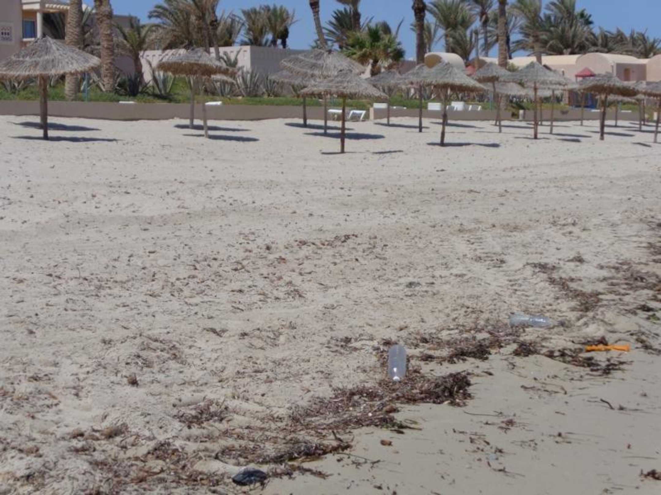 Hotelstrand seitlich verschmutzt (Müll)