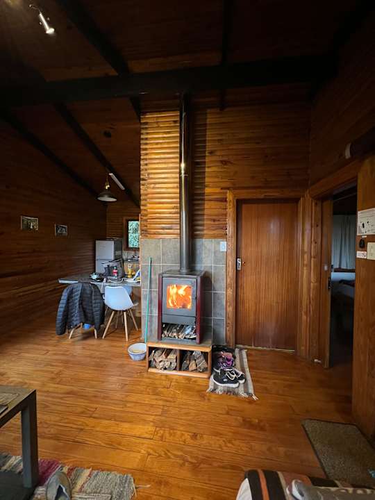 Wohnraum Richtung Küche mit Kamin