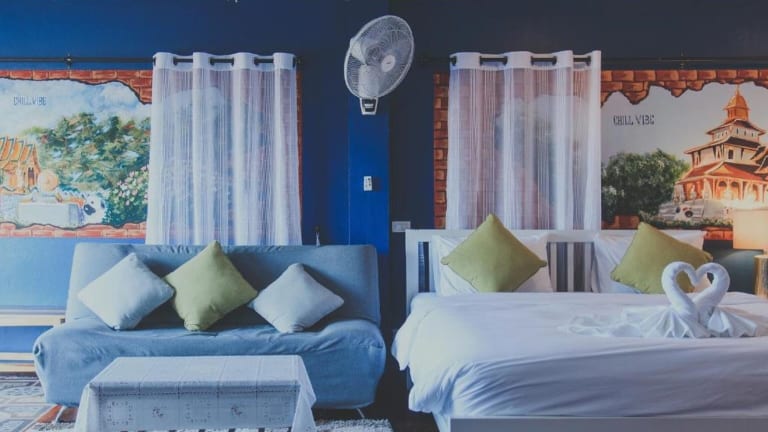 Das Chill Vibe Hostel in Chiang Mai ist der perfekte Ort für Reisende, die nach einer entspannten und ungezwungenen Atmosphäre suchen. Mit kostenfreiem WLAN, Privatparkplätzen und einer Gemeinschaftslounge bietet das Hostel alles, was Sie für einen angenehmen Aufenthalt benötigen. Genießen Sie den Balkon mit Blick auf die Stadt und die gut ausgestatteten Zimmer mit Flachbild-Sat-TV, Küchenzeile und Essbereich. Das freundliche Personal spricht Englisch und Thai und steht Ihnen rund um die Uhr zur Verfügung. Beginnen Sie Ihren Tag mit einem köstlichen Frühstück und erkunden Sie die nahegelegenen Sehenswürdigkeiten von Chiang Mai.