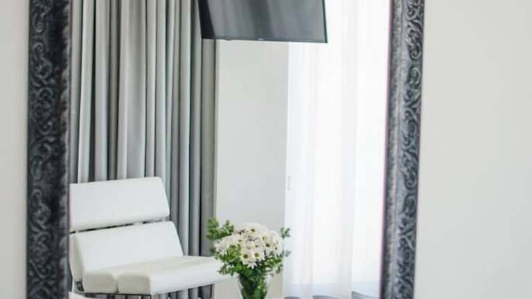 Die Zimmer in der Max Luxury Suite sind elegant eingerichtet und bieten allen Komfort, den Sie während Ihres Aufenthalts benötigen. Jedes Zimmer verfügt über einen Schreibtisch, einen Flachbild-TV und ein eigenes Badezimmer mit einem Bidet. Die Unterkünfte sind klimatisiert und bieten Ihnen eine private Terrasse, auf der Sie sich entspannen und die frische Luft genießen können. Für Ihren Strandtag stehen Ihnen 1 Sonnenschirm und 2 Sonnenliegen zur Verfügung.