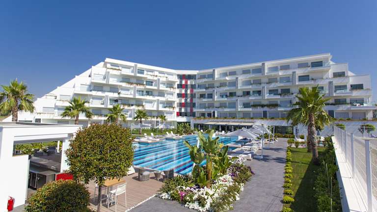 Neben den Innen- und Außenpools bietet das Resort einen Kinderpool, einen Kinderspielplatz, einen Tennisplatz und einen Garten. Für Wellness und Entspannung können Gäste das Fitnesscenter, das Wellnesscenter und die Sauna nutzen. Das Resort bietet auch verschiedene Unterhaltungsangebote wie einen Miniclub, eine Disco und einen Nachtclub.