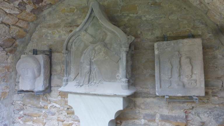 Die kleine Grünanlage in Gerolzhofen, die als Botanischer Garten bezeichnet wird, befindet sich im früheren Graben vor den Überresten der ehemaligen inneren Stadtmauer. Über diese Grünanlage müsste man wohl kaum ein Wort verlieren, wenn sich hier nicht eine kleine Ausstellung alter Bildstöcke wäre. Außerdem sind hier einige Wappensteine und ein Gedenkstein zu Ehren der Teilnehmer_innen am Gerolzhöfer Frauenaufstand von 1945 (bei dem auch einige Männer beteiligt waren). Erwähnen möchte ich auch noch den sogenannten „Zungenblecker“, der sich in der Wand der Stadtmauer befindet und der mit eindeutiger Geste dem Betrachter klar macht: „LMAA“.