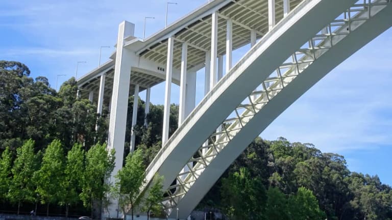 Insgesamt sechs Brücken überspannen den Douro zwischen Porto und Vila Nova de Gaia. Von Westen nach Osten sind dies - die Ponte da Arrábida, zwischen 1957 und 1963 nach den Plänen des Ingenieurs Edgar Cardoso errichtete Stahlbeton-Bogenbrücke. 493 Meter lang und 70 Meter hoch, - die Ponte Dom Luís I, zwischen 1881 und 1886 nach den Plänen des Ingenieurs Théophile Seyrig errichtete zweistöckige Eisenbogenbrücke. 385 Meter lang und etwa 60 Meter hoch, - die Ponte Infante D. Henrique, zwischen 1999 und 2002 nach den Plänen von Ingenieur Adão da Fonseca errichtete Stahlbeton-Bogenbrücke, 371 Meter lang und etwa 70 Meter hoch, - die Ponte Maria Pia, zwischen 1875 und 1877 nach den Plänen von Ingenieur Gustave Eiffel errichtete zweigelenkige Bogenbrücke, 353 Meter lang und 61 Meter hoch, - die Ponte São João, zwischen 1984 und 1991 nach den Plänen von Professor Edgar Cardoso errichtete Spannbeton-Rahmenbrücke, 1.140 Meter lang und 66 Meter hoch und - die Ponte do Freixo, zwischen 1993 und 1995 nach den Plänen von Professor António Reis errichtete Spannbeton-Balkenbrücke, 750 Meter lang.