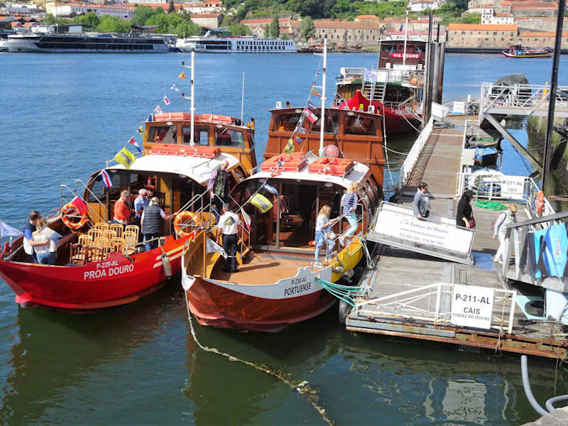 Die „Sechsbrückentour“ auf dem Douro gehört ganz sicher zu den Klassikern bei der Erkundung Portos und wird von mehreren Veranstaltern durchgeführt, die alle am Cais da Ribeira starten und sich weder im Fahrpreis, noch in der Routenführung unterscheiden. Die Fahrt geht meist stromaufwärts und man passiert zunächst die beeindruckende Brücke „Dom Luis I“, die von einem Mitarbeiter Gustave Eiffels konstruiert und 1886 (damit also 9 Jahre nach Eiffels Eisenbahnbrücke) eingeweiht wurde. Die 3000 Tonnen verbauter Stahl verbinden seither die Altstadt Portos mit den Portweinkellern von Vila Nova de Gaia – ein grandioser Anblick, der sich vom Fluss aus bietet! Weiter geht es unter der 2003 errichteten „Ponte do Infante“ zur „Ponte Maria Pia I“, die tatsächlich von Gustave Eiffel selbst entworfen wurde und sein erstes Werk in Portugal war: 60 Meter über dem Fluss wird die Eisenbahnbrücke von einem gewaltigen Bogen getragen – eingeweiht wurde das Werk 1877 und galt zur damaligen Zeit als eine echte Weltsensation. Die Portuenser waren aber misstrauisch und gaben die Brücke erst frei, nachdem sie exemplarisch eine Last von 1500 Tonnen (!) problemlos bewältigen konnte. Es folgen die Ponte de São João und die Beton-Autobahnbrücke Ponte do Freixo, nach der das Schiff dreht und mit dem Strom an allen Brücken, der Altstadt Ribeira und den Portweinkellern bis zur modernen Brücke „Ponte de Arrábida“ fährt, die 1963 fertiggestellt wurde und damals als längste Spannbetonbrücke der Welt gehandelt wurde. Nach so vielen Rekorden erreicht das Schiff nach knapp einer Stunde wieder den Anleger. Neben einmaligen Perspektiven, die sowohl die Brücken, als auch die Stadt selbst betreffen, bekommt man während der Fahrt in mehreren Sprachen noch ausführliche Informationen zu den Bauwerken am Ufer. Mir hat die Stunde auf dem Douro sehr gut gefallen und den Preis für die Tour empfand ich als durchaus angemessen. Als Tipp: Mit Vorlage der Porto-Card gibt es einen spürbaren Rabatt auf die Tickets, die man an den kleinen Verkaufshäuschen am Kai erwerben kann.