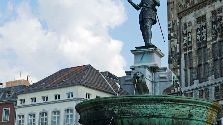 Ein Bummel über den Rathausmarkt (kurz Mark genannt), der sich in der Aachener Altstadt vor dem Aachener Rathaus befindet, gehört zu einem Besuch Aachens unbedingt dazu. Auf dem Markt steht der Karlsbrunnen, der genauso wie das Rathaus ein beliebtes Fotomotiv ist.
