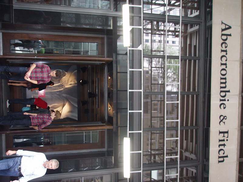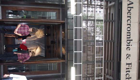 Der Abercrombie-Store in der 5th Avenue ist ein Laden, den man unbedingt besucht haben muss. Zu kaufen gibt es dort überwiegend gemütliche Hoodys, T-Shirts, Jeans, und und und... ABER schon am Eingang wird man von einem halbnackten männlichen Model begrüßt und bekommt als Souvenir ein Polaroid mit demselben. Das Innere des Ladens zeichnet sich durch laute Musik, Dunkelheit und den einzigartigen Abercrombie-Duft aus. Das Schlange stehen lohnt sich also :-))