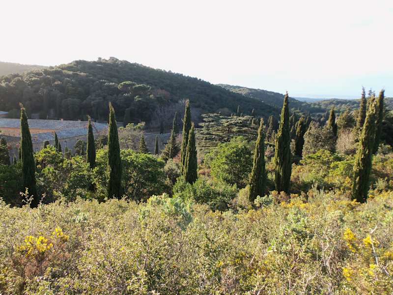 Im Südwesten von Narbonne, am Ende felsigen Tales der Corbières, versteckt sich dieses prächtige Zisterzienser-Ensemble. Die Abtei befindet sich inmitten einer typischen Mittelmeerlandschaft, in der Zypressen, Kiefern und Buchsbäume dominieren. Der Ursprung des Klosters geht auf das Ende des 11.Jh. zurück. Zunächst wurde die Benediktinerregel angenommen. Mitte des 12.Jh. schloss Fontfroide sich dem Orden von Cîteaux an. Die Abtei erhielt bald umfangreiche Ländereien, die sich bis nach Katalonien erstreckten. So gründete Fontfroide ab dem Beginn des 13.Jh. acht Abteien. Während des Kreuzzuges gegen die Albigenser tat sich Fontfroide als Bastion der katholischen Rechtgläubigkeit gegen das Katharertum hervor, das sie mit Nachdruck bekämpfte. Zwei Mönche aus Fontfroide zeichneten sich besonders aus: Pierre de Castelnau und Raoul Raoul wurden von Innozenz III. zu Legaten ernannt. Zu den berühmten Äbten gehört auch Jacques Fournier, der unter dem Namen Benedikt XII. (1334 – 1342) Papst wurde. Nach einer Phase des Niedergangs fiel Fontfroide von 1476 bis 1746 unter weltliche Verwaltung. Zu dem Zeitpunkt verlor die Abtei den Abttitel und die dazu gehörenden Einnahmequellen. Die Prioren des Klosters führten im 18.Jh. zahlreiche Veränderungen durch, bevor das Ensemble 1791 versteigert wurde. Die während der Französischen Revolution relativ gut erhaltenen Gebäude wurden von 1858 bis 1901 von den Zisterziensern der Unbefleckten Empfängnis belegt. Seit 1908 gehört das Bauwerk derselben Familie, der wir auch die generelle Instandsetzung Fontfroides verdanken. Die ältesten Gebäude (Kirchenschiff und Kapitelsaal) stammen aus dem Ende des 12.Jh. Aber bis zum Vorabend der Französischen Revolution haben die Mönche nicht aufgehört, sie ständig zu verschönern, zu verändern und auszubauen. Trotz der sich überlagernden Baustile ist ein deutlicher Wille zur Einheit und Einheitlichkeit sichtbar. Der Kreuzgang dessen einer Flügel an die Abteikirche grenzt, ist der Mittelpunkt. Seine Funktion ist es, die wichtigen Teile des Bauwerks zu verbinden. Der vom Turm der Abteikirche beherrschte Kreuzgang wurde in zwei Abschnitten gebaut. Aber das tut der Harmonie, die er ausstrahlt, keinen Abbruch. Das Kreuzrippengewölbe der Gänge endet auf Kragsteinen oder Kapitellen mit Blattwerk. Zu jeder Jahreszeit erfreut Sie der des Kreuzganges durch seine reichen Farben. Die Abteikirche wurde, wie üblich, auf dem höchsten Punkt des Klosters errichtet. Sie entspricht dem traditionellen Grundriss in Form eines lateinischen Kreuzes. In dem in fünf Joche aufgeteilten Kirchenschiff erhebt sich das Spitzbogentonnengewölbe in 20 m Höhe. Das südliche Seitenschiff öffnet sich auf fünf Kapellen, die aus der Amtszeit des Abtes Jacques Fournier zu Beginn des 14.Jh. stammen. Als Gustave und Madeleine Fayet Fontfroide erstanden, waren die Kirchenfenster verschwunden. Sie entschieden sich dafür, die Farben sprechen zu lassen und installierten ab 1913 neue Kirchenfenster. Der zwischen 1180 und 1280 gebaute Kapitelsaal verbindet Schlichtheit und Majestät, Macht und Leichtigkeit. Sie können auch den eindrucksvollen Speisesaal, den Vorratskeller, und im 1. Stock den Schlafsaal der Laienbrüder besichtigen. Im 17.Jh. wurde die direkte Umgebung der Abtei durch die Anlage eines an die Gärten grenzenden Ehrenhofes mit monumentalem Eingangstor verschönert. Fontfroide ist berühmt für seinen Rosengarten, den größten im Süden Frankreichs, sowie für seinen « Garten der Düfte » und den sog. Garten « de la Portion Cule », der mit Zypressen, Olivenbäumen und einer Vielzahl von Schwertlilien bepflanzt ist.