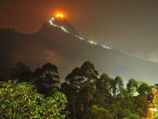 Der im südlichen Hochland Sri Lanka's gelegene 2.243 Meter hohe Adam's Peak (singhalesisch: Sri Pada), der fünfthöchste Berg des Landes, ist einer der heiligen Orte in Sri Lanka. Fast alle Religionen verbinden diesen Gipfel mit unterschiedlichen Legenden. Hier, so besagt es die Geschichte der Christen, setzte Adam nach seiner Vertreibung aus dem Paradies das erste Mal seinen Fuß auf die Erde. Laut buddhistischem Glauben hinterließ Buddha hier seinen Fußabdruck auf dem Weg ins Paradies. Auch die Hinduisten verbinden mit diesem Berg etwas ganz Besonderes: Sie nennen ihn Samanalakande, was so viel heißt wie Schmetterlingsberg, denn, gemäß den Hindus, kommen die Schmetterlinge hierhin um zu sterben. Bei Anbruch der Dunkelheit besteigen zahlreiche Gläubige dieser Religionen den Berg, um dort den Sonnenaufgang zu erleben. Insgesamt etwa 4.500 Stufen muss man beim drei- bis vier-stündigen Aufstieg ab Dalhousie erklimmen. Auf dem Weg nach oben gibt es zur Erholung ein paar Teehäuser. Für die schwierigere Route ab Ratnapura benötigt man etwa sieben Stunden. Beide Strecken sind während der Saison -von Dezember bis Mai- beleuchtet. Homepage: http://sripada.org/