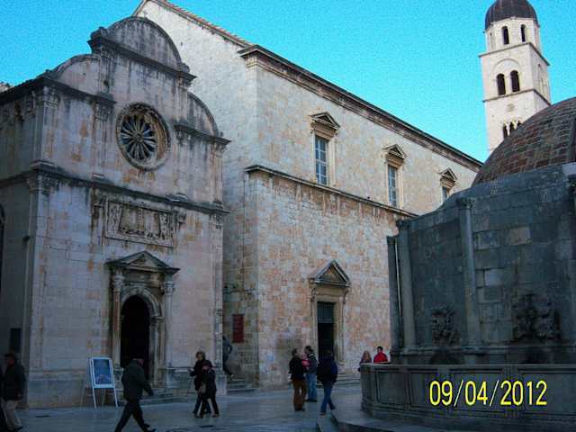 Die älteste Apotheke von Europa wurde 1317 erbaut.Man geht vom Stradun aus durch einen schmalen Gang zwischen der gr. und der kl Kirche, genau gegenüber der Fontana.(Brunnen)Die Besichtigung kann man in Kuna oder €uro bezahlen. Die Apotheke, der Kreuzgang und die Kirche waren das bevorzugte Ziel der serbischen Artillerie von 1991-92 ,einige Granaten liegen noch zur Erinnerung dort. Gott sie Dank hatte man die alten Gefäße und Figuren ausgelagert und die sind noch gut erhalten.Besonders die Kirche ist wieder schön hergerichtet worden.