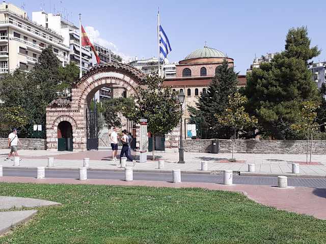 Die der Sophia (=Weisheit) Jesu geweihte Kirche ist neben der des Heiligen Dimitrios eine der Hauptkirchen in Thessaloniki. Vermutlich wurde sie im Lauf des 7. Jahrhunderts erbaut. Wie viele Kirchen in Thessaloniki durchlief die Agia Sophia während der Herrschaft unterschiedlicher Mächte auch ihre Zuordnung zu verschiedenen Religionen. Während der Zeit der Kreuzritter, die zu Beginn des 13. Jahrhunderts das „Königreich Thessaloniki“ ausriefen, wurde die Kirche katholischer Bischofssitz. Als die Osmanen die Kreuzritter in der Herrschaft ablösten, wurde aus der Kirche eine Moschee. Seit dem Anschluss Thessalonikis an Griechenland im Jahr 1912 wird die Agia Sophia wieder als christliche Kirche genutzt. Die Kirche ist innen prächtig ausgestattet und enthält Kunstwerke, die vom 8. bis 12. Jahrhundert geschaffen wurden. Bemerkenswert ist das Mosaik in der Kuppel der Agia Sophia, das die Himmelfahrt Christi zeigt. Ein Besuch lohnt sich.