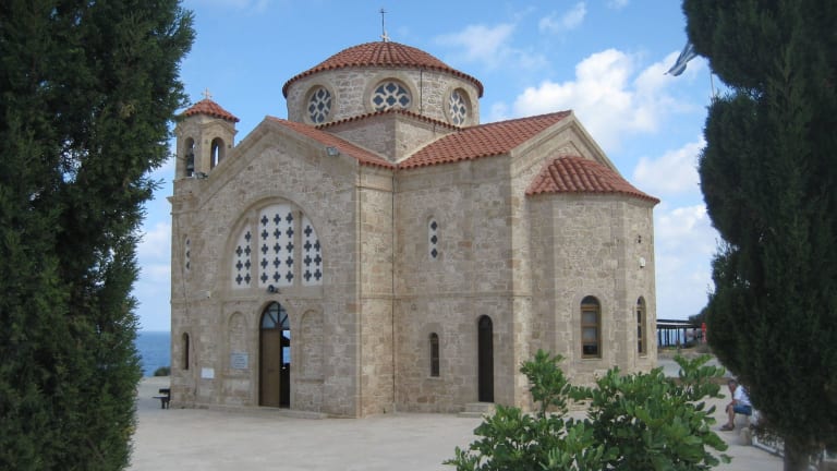 Am Ende der E 701, in Pegeia, am Cape Drepano, steht auch eine Kirche, die dem Heiligen Georgios geweiht wurde. Vom Cape Drepano hat man einen schönen Ausblick auf die Insel Geronisos. Diesen Ausblick konnte auch der damalige Kanzlerkandidat Scharping vor Jahren geniessen. In der Kirche gibt es schöne Ikonen von Heiligen Georg, der den Drachen tötet und eine sehenswerte Altarwand